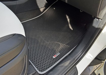 Автоковрики ЕВА не впитывают, а удерживают грязь в ячейках. Вода не катается по полу, как в резиновых половичках, однако, её все равно видно. ЕВА удобны тем, что их легко достать не пролив и вытряхнуть. Они дешевле.